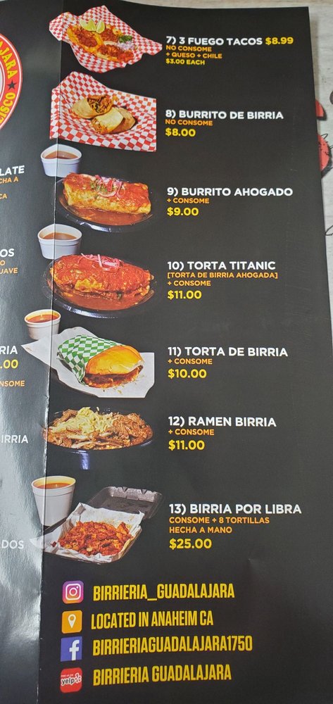 Birrieria Guadalajara Menu